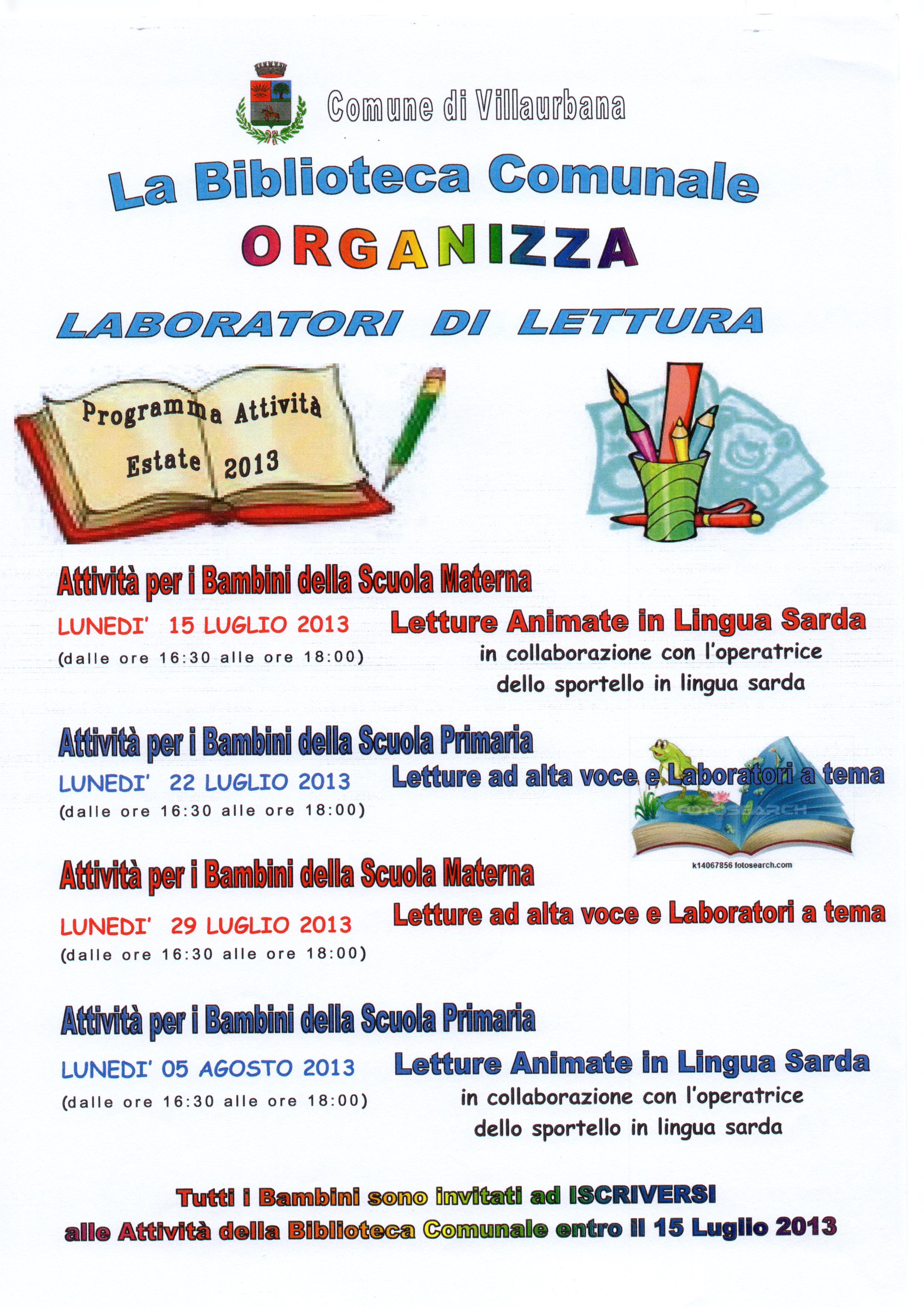 Si informa che sono aperte le adesioni alle attività di lettura per bambini presso la biblioteca comunale. In allegato il calendario e le attività in programma.
