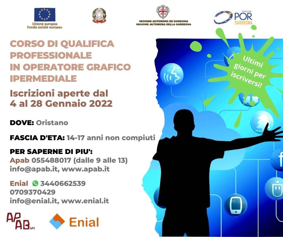Non sarà necessario acquisire alcun libro di testo, in quanto i materiali didattici a disposizione degli allievi saranno riconosciuti gratuitamente. Gli allievi saranno seguiti costantemente da un Tutor che si confronterà con i genitori/esercenti la responsabilità genitoriale ed il gruppo di lavoro. Al termine del percorso gli alunni conseguiranno la Qualifica di Istruzione e Formazione Professionale di Operatore grafico ipermediale (III livello EQF), rilasciata dalla Regione Sardegna e valida su tutto il territorio nazionale ed europeo.