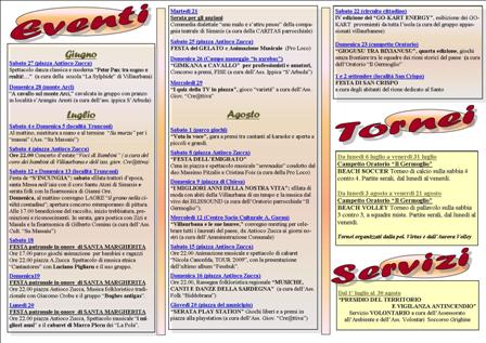 Domenica ore 10.00 convegno “il grano nella civiltà contadina”, apertura concorso estemporaneo di pittura. Ore 17.00 benedizione del raccolto, inizio trebbiatura. Ore 22.00 gara poetica con Zizi e Masala e la fisarmonica di Gilberto Cominu (a cura dell'Ass. Cult. “Su Massaiu”)