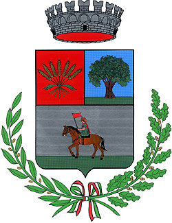 Si tratta del tradizionale scudetto, su intero sfondo giallo, con su in alto la corona tipica dell'antica “civitas”, quella che contraddistingue i caratteri di Comune e Città, e in basso i diademi intrecciati di alloro e quercia, simboli della Repubblica.