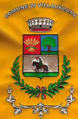 All'interno, i tre disegni caratterizzanti del comune: nella parte superiore su due diversi quadri, un ulivo secolare e un mazzo di sette spighe testimonianza del rapporto con la terra del paese, della sua fertilità e soprattutto delle capacità produttive locali caratterizzate appunto dall'olio e dal pane, per la cui tipicità Villaurbana è rinomata anche a livelllo nazionale. Nella parte inferiore la stilizzazione del cavaliere San Crispo, ricordato e per certi versi venerato dalla comunità, ma simbolo del fiume che attraversa il territorio villaurbanese. A realizzare lo studio del gonfalone due giovani locali: l'architetto Robert Dessì e lo studioso Roberto Zucca.